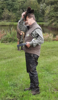 Am Vortag beim Fährtenlegen wurden wir so richtig geduscht und die Beteiligten waren, man könnte sagen „durch und durch“ nass. Dazu kam an diesem Tag noch die Kälte.