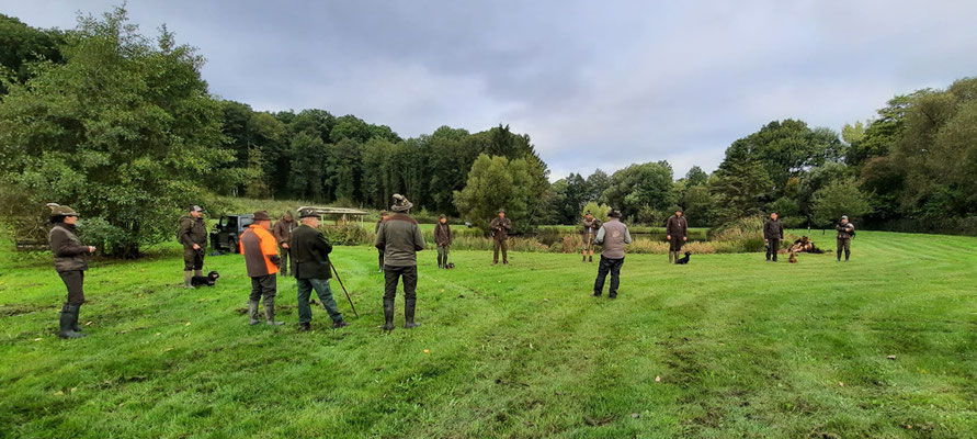 In dem ehemaligen Gatter, der Zaun wurde zwischenzeitlich entfernt und so stellt sich auch Schwarz- und Rehwild ein, mit lockerem Buchen- und Eichenmischwald, fand dann, ohne Regen, diese hochwertige Prüfung statt.